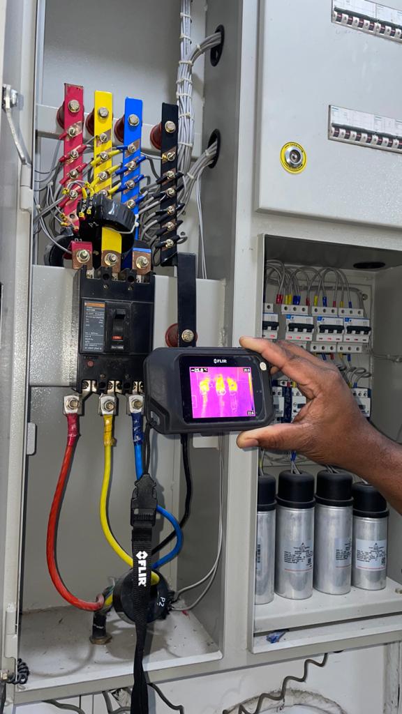 During normal working, there are incidences of loose connections in LT panels/ distribution boards giving rise to high temperatures which if left unattended in time can initiate fire. With thermal imaging with IR camera such hot spots in the panels are detected. Timely action taken in advance can prevent any mishap.